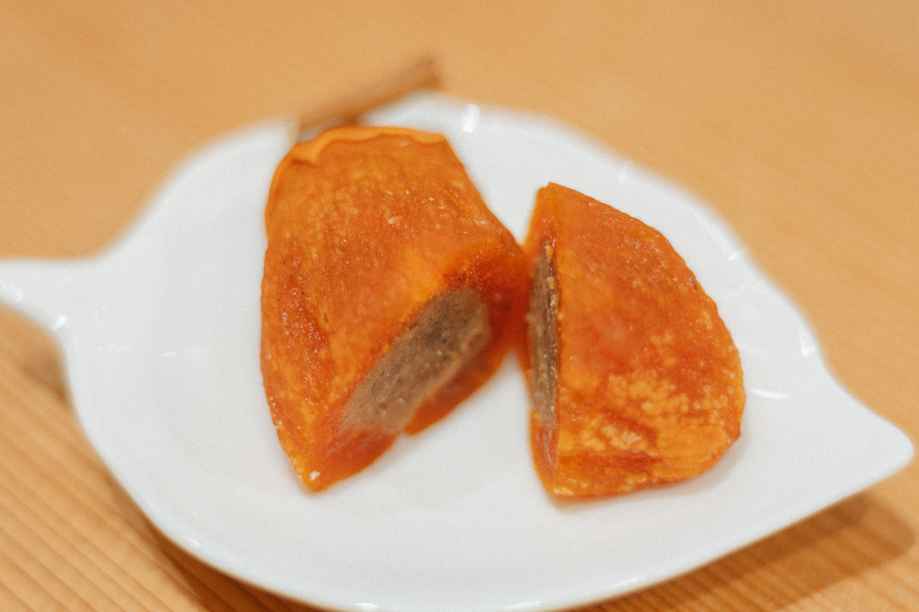 自分にとって柿とは? そうですね、あまり考えたことなかったけれど、柿って奥が深いんですよ。僕自身、大学時代に柿の研究をしましたが、一生をかけて柿渋の研究に打ち込んでいる先生もいます。実、へた、葉っぱ、それぞれに使い途があるし、木もゴルフのクラブヘッドに使われる。捨てるところがない果物の木は柿だけと言われてます。干し柿づくりも本当に奥が深くて、完熟させつつ、乾燥させていく。その過程で渋が抜けていくのですが、ちょうどいいバランスを見極めるのが難しい。手間がかかるから大手も参画してこない。だからこそ僕らが、奈良の特産品である柿の生産が持続できるよう、もっとステキな果物にしていかないとね。