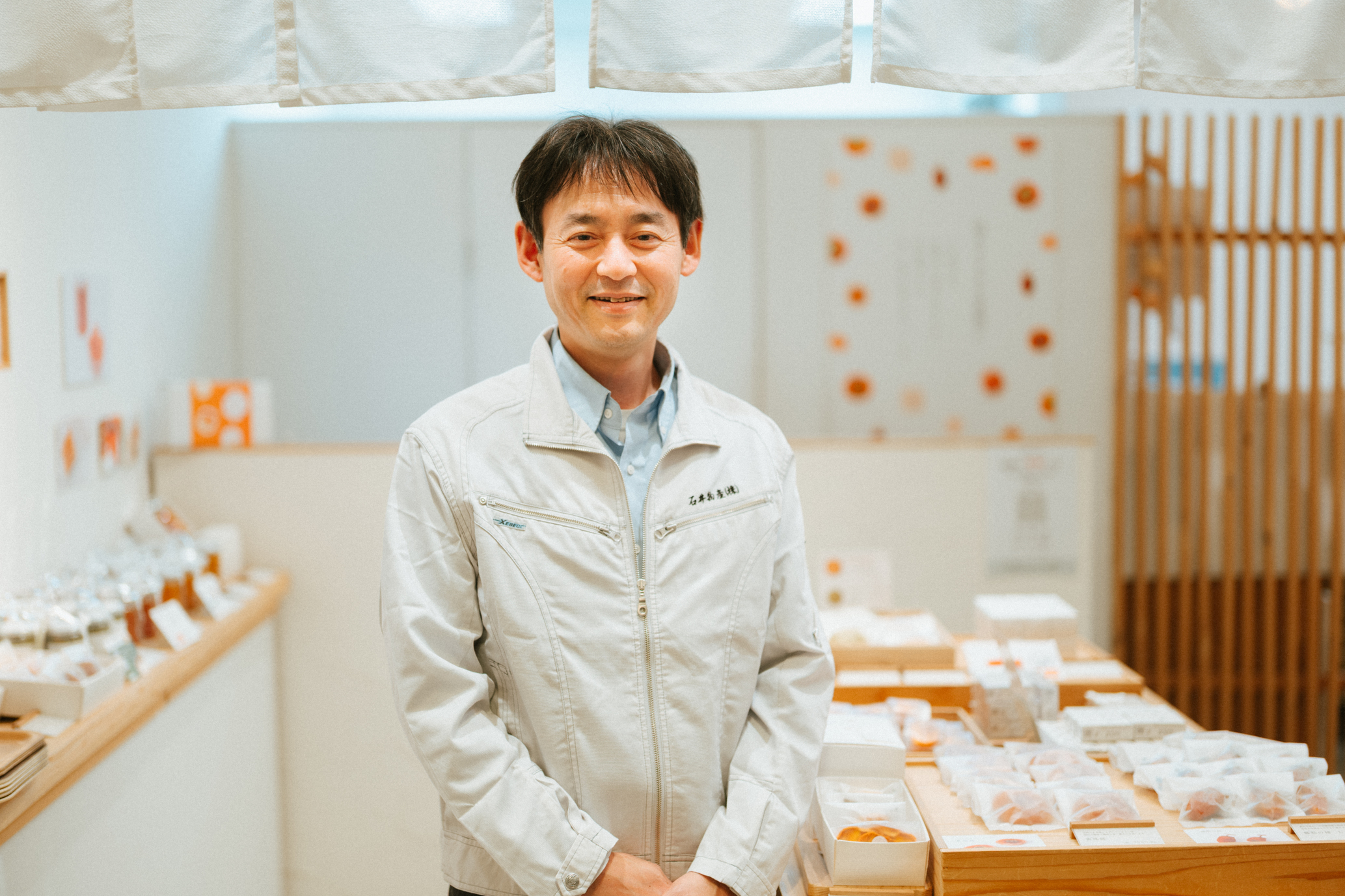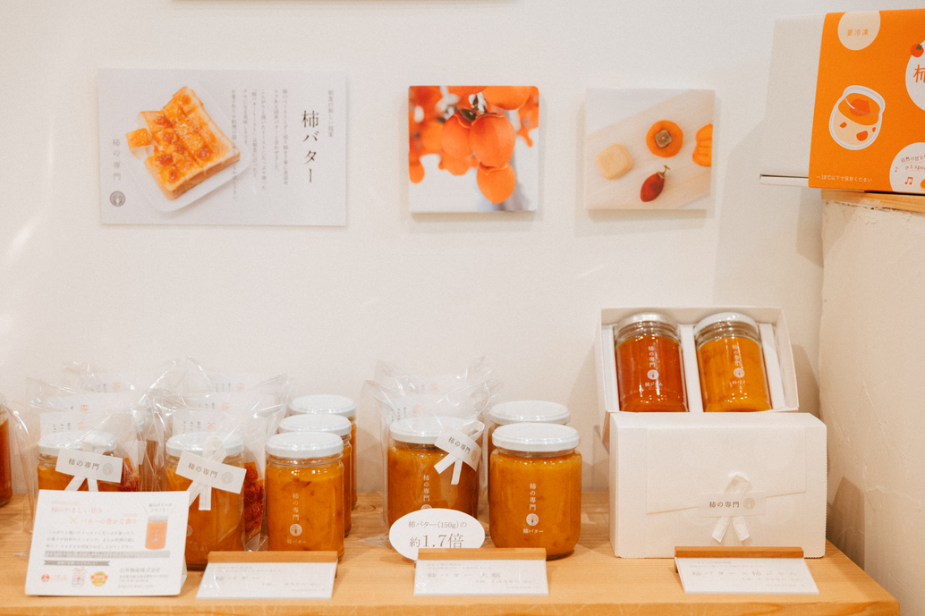 店舗のディスプレイは主役である商品が引き立つよう、白をベースに日本の伝統色である柿色が映えるようにしました。昔から柿に馴染みのある高齢のお客様がやや多いですが、若い人も洋菓子の新商品を出すと反応してくれます。こだわりは柿がメインの原材料だからこそ、美味しい柿を使うこと。もともと地域の農家さんの下支えとなることからはじまった事業で、二人三脚で美味しい柿を栽培してきました。有機JAS認証を受けた自社農園も経営しており、最近は、若い人が意欲的に美味しい柿づくりに挑んでくれていることが嬉しいですね。