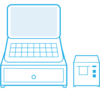 「パソコン型POSレジ」は、市販のパソコンにPOSシステムをインストールして使用するタイプのレジです。必要に応じて、バーコードリーダー(バーコードスキャナー)やレシートを印刷するためのプリンター、現金を保管するための金庫・引き出し(キャッシュドロア)などの周辺機器を接続して使用します。すでにパソコンを持っている場合、新たにハードウェアを購入する必要がなく、初期導入費用を抑えられます。また、パソコンとして使用できるので、会計業務の合間に資料作成やExcelでの分析、インターネット利用も可能です。 |