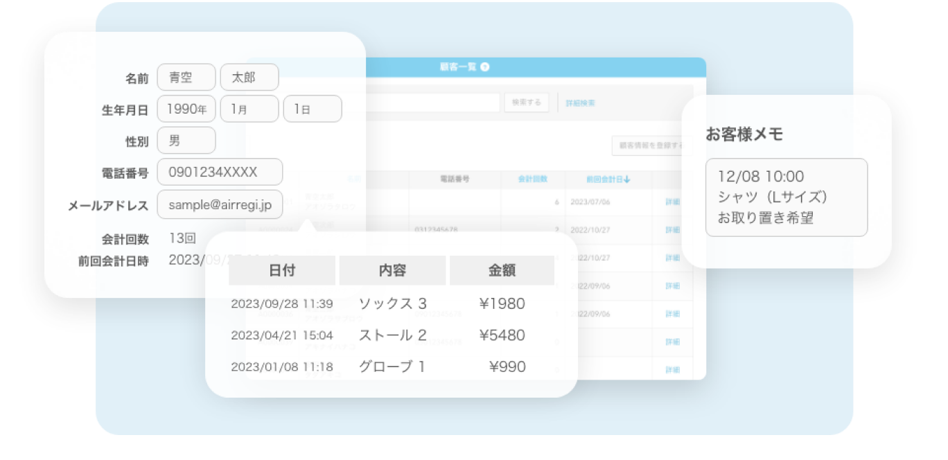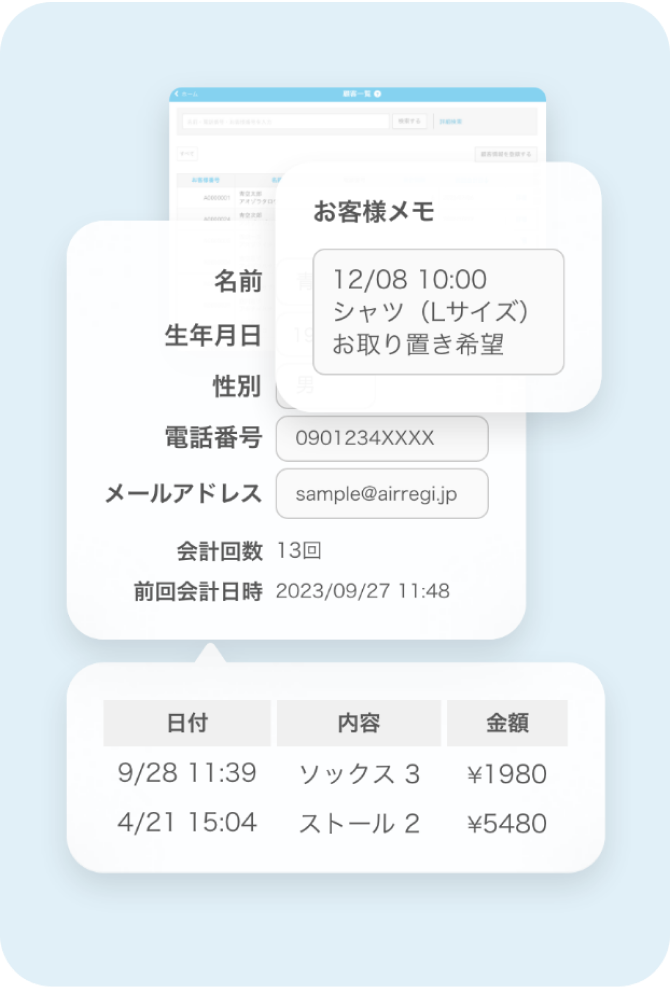 会計時に顧客情報を紐付けることで、来店回数、最終来店日、購入履歴、誕生日といった情報を管理できる機能です。顧客ごとの嗜好を把握し、個別のクーポンを発行したり、DMを送ったりするなど、リピート率向上に向けたきめ細やかなアプローチが可能です。