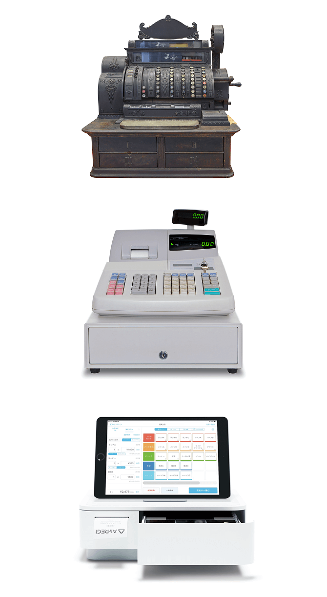 POSシステムは、1970年代にアメリカで開発されました。それまでは、販売金額の記録と現金を保管する機械式の「レジスター」で販売管理をしていましたが、POSシステムの誕生で、それらを手間なく管理できるようになったのです。