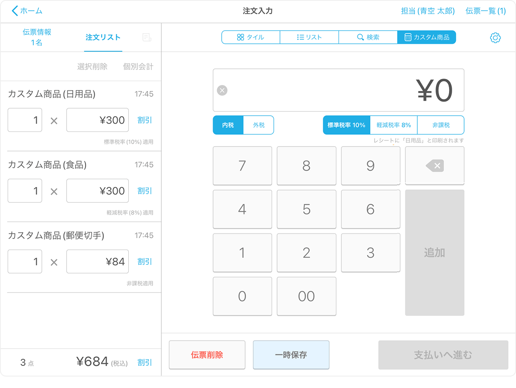 注文内容に該当する商品名を注文入力画面でタッチします。