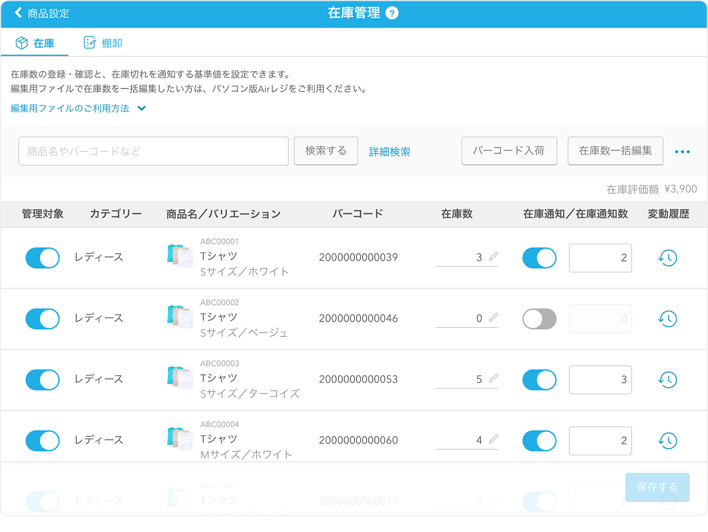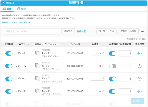 販売した商品の情報をPOSシステムに登録しておくことで、在庫データがリアルタイムで更新され常に最新の在庫数を把握できます。