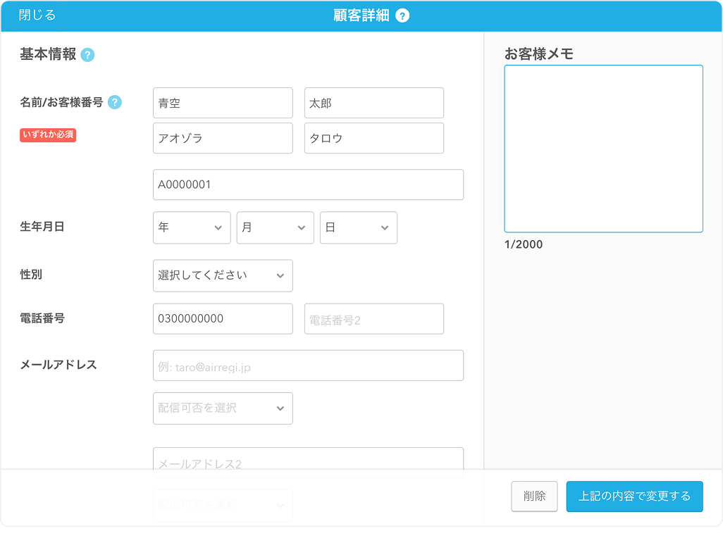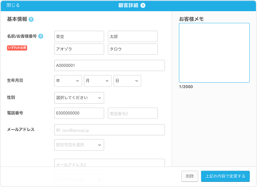 お客さまの情報を登録・管理できます。また、会計前・会計後の伝票に顧客情報を紐づけることで、来店頻度や好んで購入されている商品などの情報を把握し、お客さまのニーズに合った細やかなセールスが可能となります。