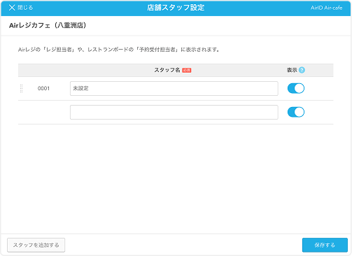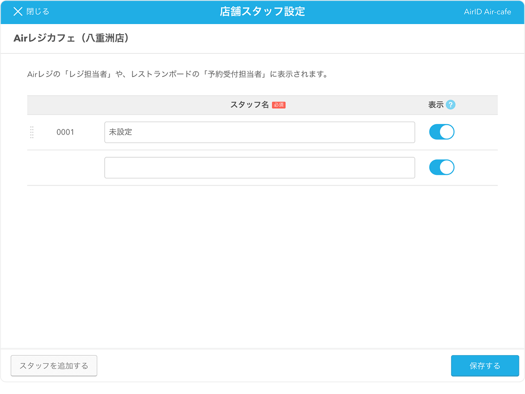 店舗スタッフ(レジ担当者など)の情報を登録・管理できます。