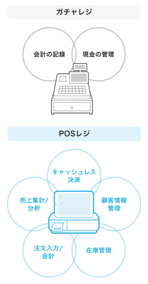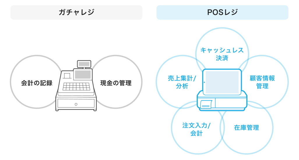一方、ガチャレジは、会計機能のみが搭載されている一般的なレジスターのことを指します。