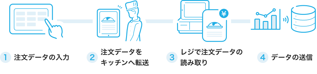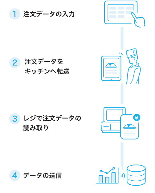 スタッフがハンディ端末で注文を入力する、またはお客さまが自身のスマホから注文する。 -