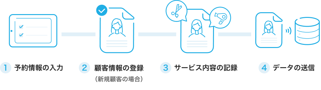 施術の詳細や使用した商品、次回への申送り事項などをレジに記録する。 -