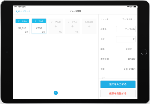 席・テーブルの空き状況、受付した注文伝票をセットで管理・共有ができます。レストランボードと連携すると予約管理もできます。