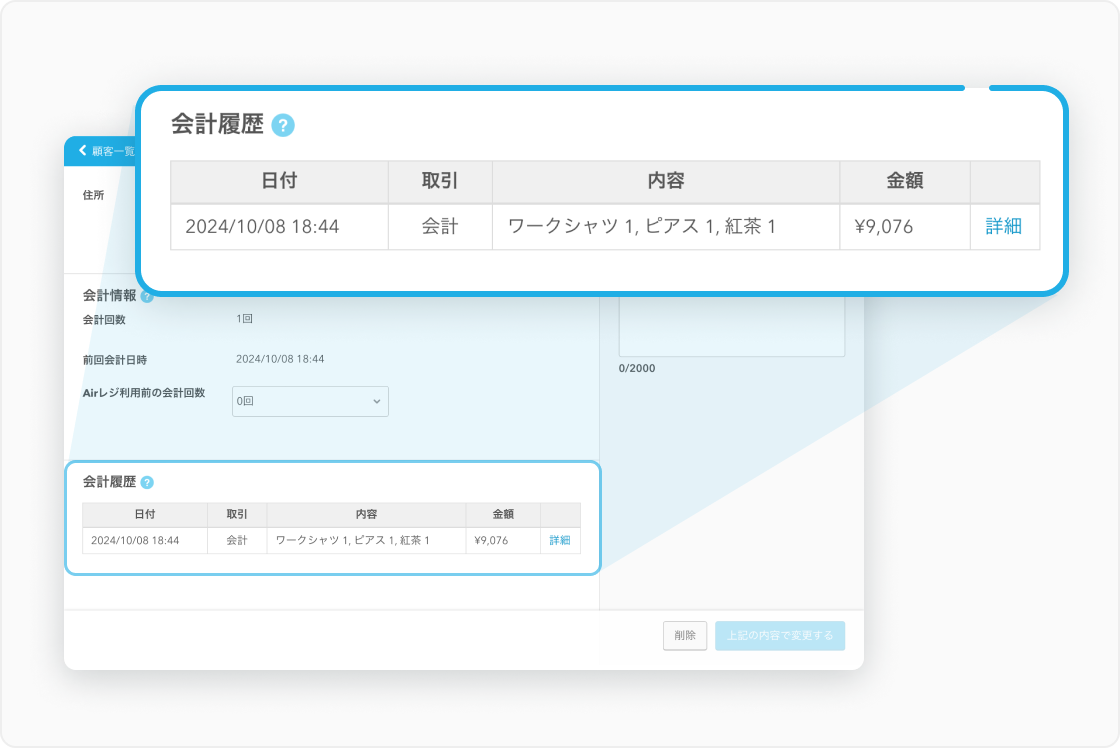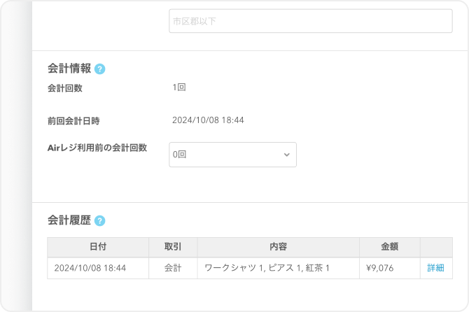 さらに、顧客詳細からお客様の会計履歴を確認することも可能です。