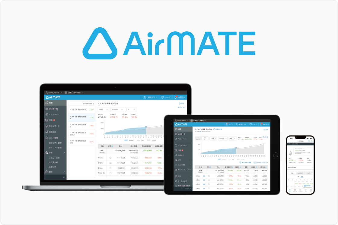 Airメイトは、お店の状況がひとめでわかる経営サポートサービスです。