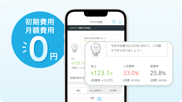 経営サポートサービス『Airメイト』と連携すると、売上や人件費の集計、週次・月次の振り返りまで無料で手間なくカンタンにできます。