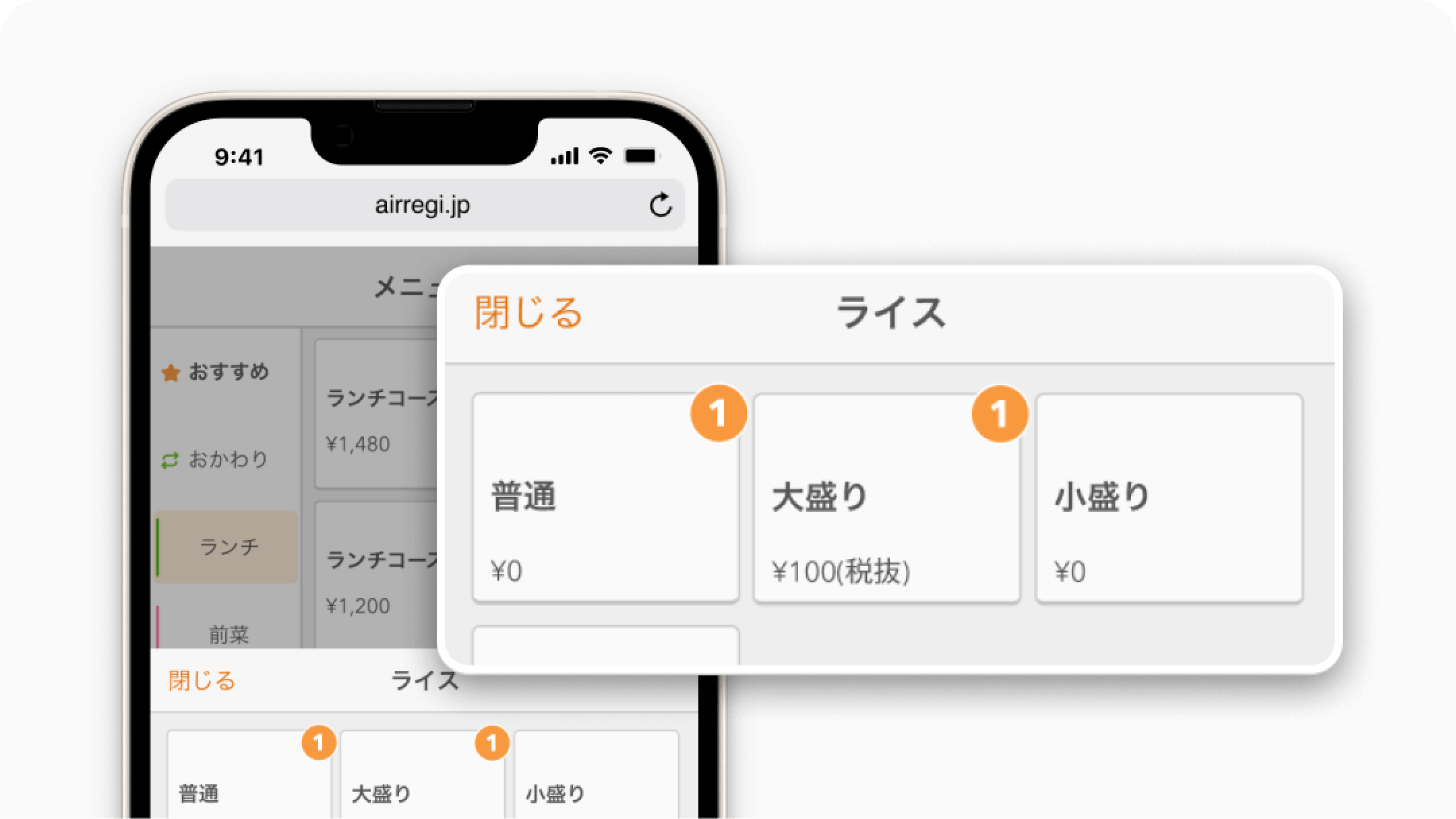 焼酎の割り方やライスの大盛りなど、メニューごとにバリエーションを選択できるので、お客様の細かな注文にも対応できます。