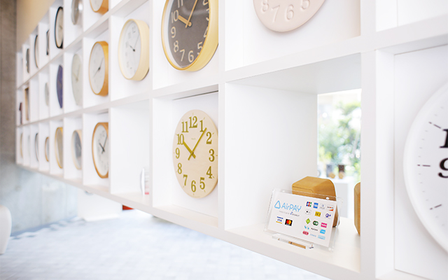 デザインクロックを中心とした自社商品を展開するショールームです。百貨店やインテリアショップなどお取引先との商談をするショールームとしての機能と同時に、一般のお客様がお買い物していただける店舗としても運営をしています。2013年にオープンして以来、Airペイを導入する2018年まで、当店では現金のみの取り扱いでした。1万円を超える商品も多く、カードが使えないということで販売の機会を逸してしまう、という課題感がありました。オンラインショップではカードが使えるので、商品に興味を持っていただき購入意欲のある方にはオンラインショップをご案内するという流れになっていました。来店時にすぐに購入しなくても、オンラインショップで購入いただけたのではと思いますが、お客様に行動を委ねてしまうので迷われて結局購入をしなかった方もいるかもしれません。欲しいと思った商品をこの場ですぐご購入いただけたほうがいいですよね。そこで複数のカード決済システムを比較検討して「Airペイ」を導入することに決めました。導入の効果は期待していた以上でした。