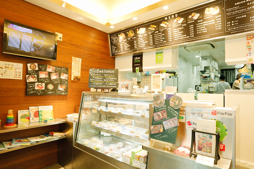 2012年にオープンした手作りお総菜とお弁当のお店です。お弁当というと男性が買うイメージが強いですが、子育て中の忙しい主婦や、独り暮らしの年配の方にも気軽に買いに来ていただきたいと思い、明るく入りやすい内装にして、メニューにも工夫を凝らしました。お総菜を小分けで買えるようにしたり、ヘルシーなメニューを用意したり、今では老若男女、幅広い層の常連のお客様にお越しいただいています。