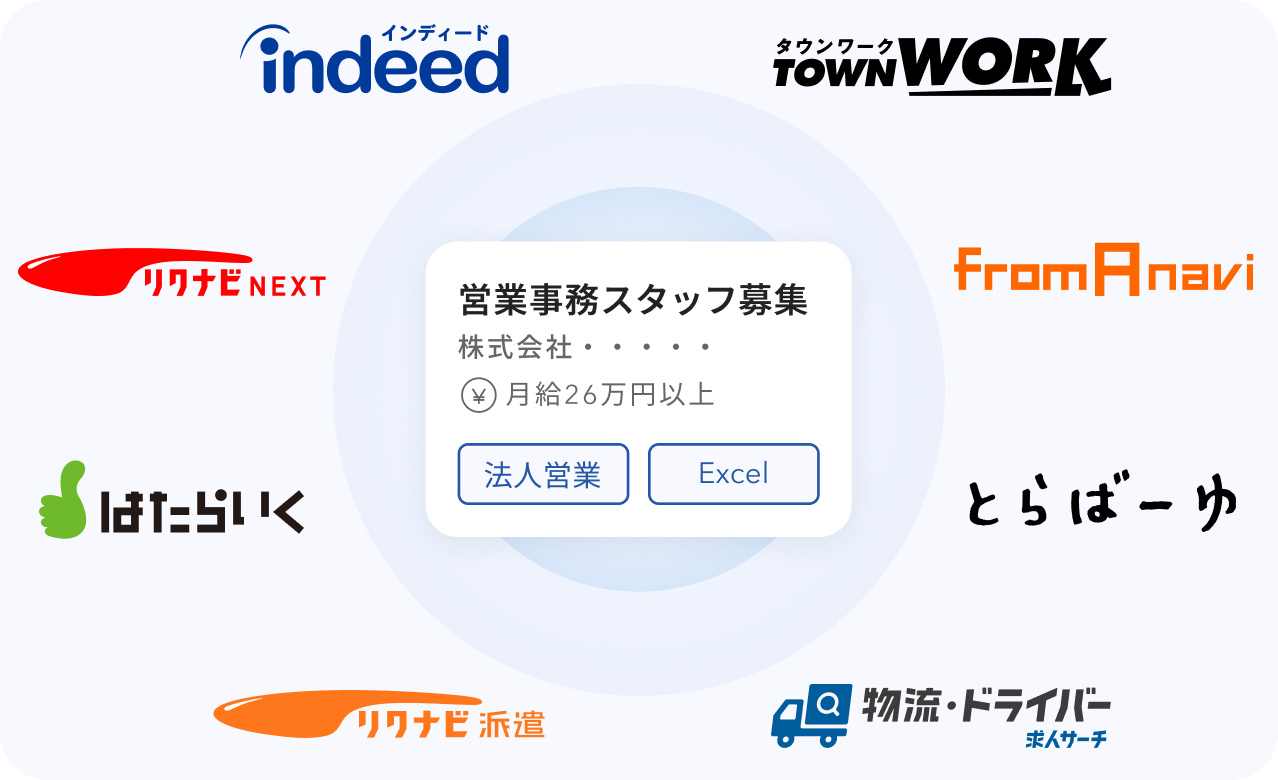 ※Indeed PLUS(インディードプラス)連携求人サイトは随時追加予定です。掲載対象となる連携求人サイトの種類や掲載可能時期は変更の可能性があります。